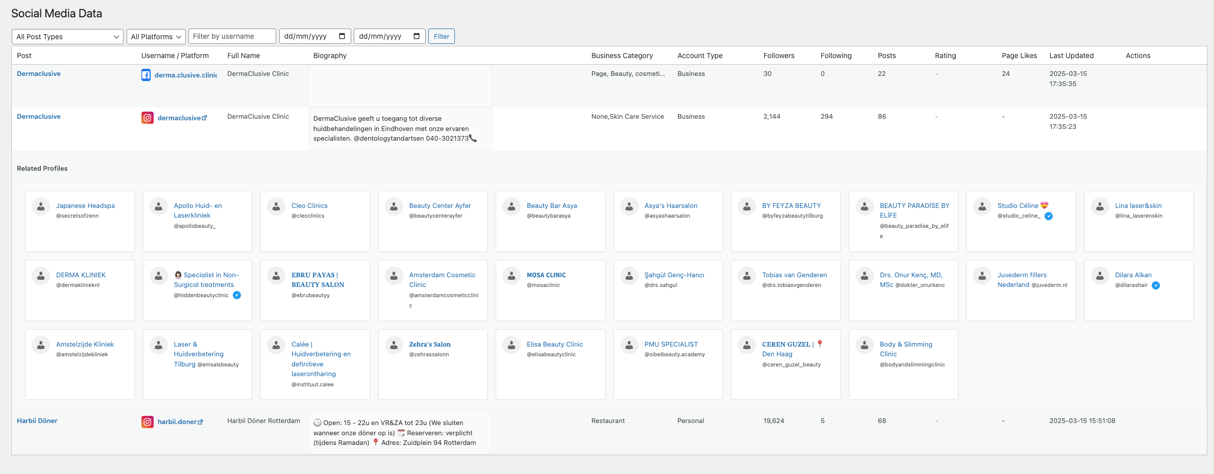 – URL Validation & Management: Automatically blacklist invalid social media URLs and prompt correction. Upon fix, the URLs are whitelisted again to ensure data integrity.